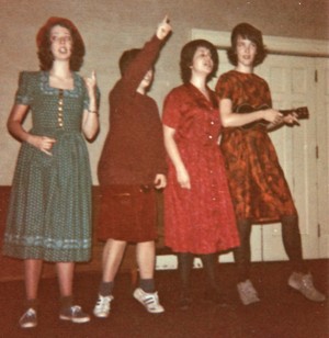 Anyway Putzer is the shortest one in the Temperance Union line-up, her face obscured by her arm: the future attorney already cognizant of liability issues.  Mary-Ellis who I’ve written about:  www.elenalouiserichmond.com/2010/11/doin-our-stuff/  is the one on the end playing the ukulele. I am the one who looks the most like my mother.