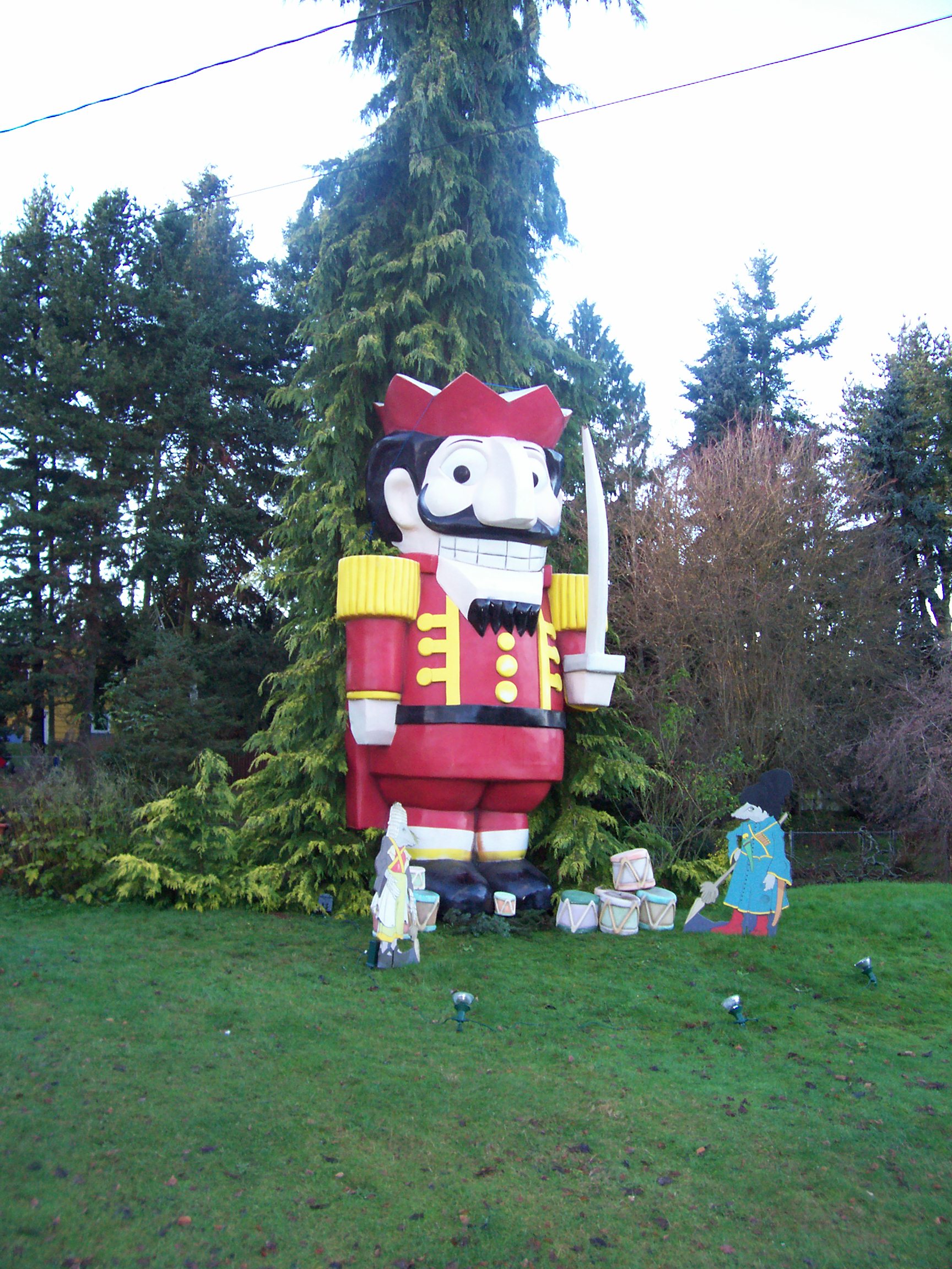Carkeek is a walk for a warm day because it’s cool in the woods and cold at the beach. During the cold weather months of November and December you can’t do better than a brisk walk to 90th and Dibble to see the giant Nutcracker. I happened to pass by one January when some guys were dis-assembling it and I got the whole story. It’s a prop from an old Maurice Sendak production of The Nutcracker. The set had been dismantled and this particular nutcracker was destined for a landfill. My Dibble neighbor went down to Seattle Center at three in the morning with a flatbed truck and rescued the fiberglass artifact. It’s been a holiday fixture in my neighborhood for years.
