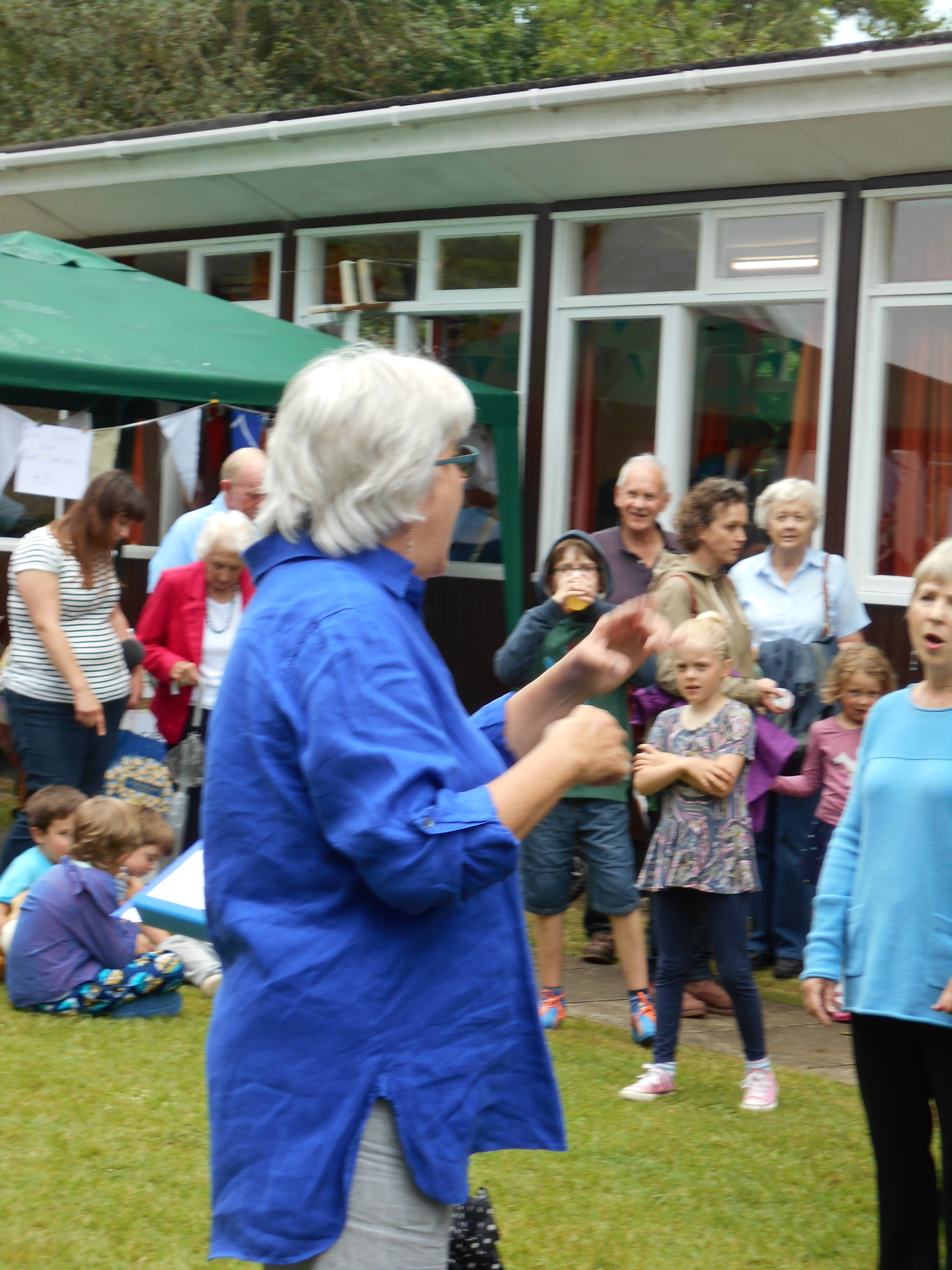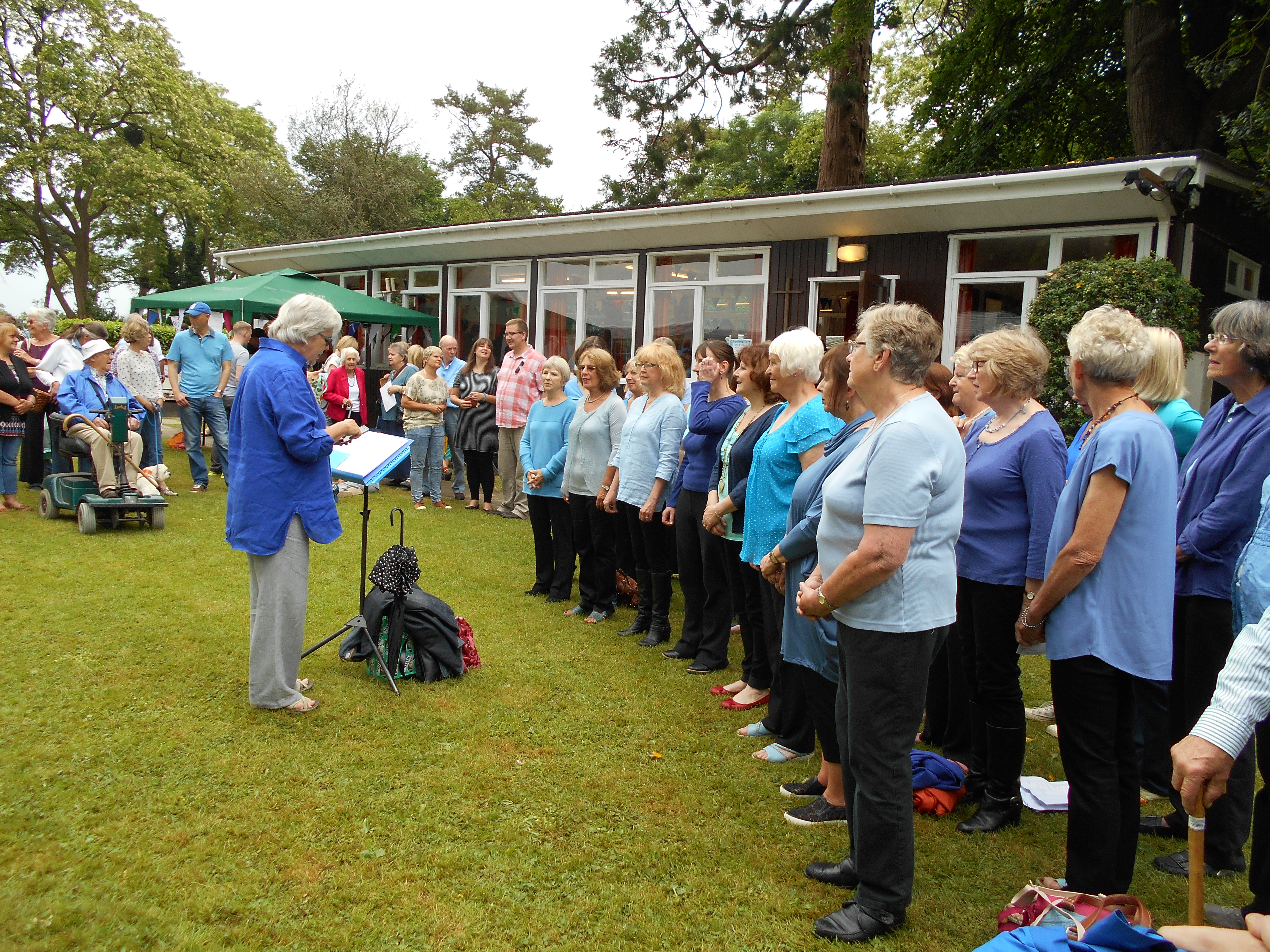 So I was up in the bell tower in shameful retreat. When I got my camera sorted, I climbed down and went back to the fete in time to hear the village choir. It could have been The OK Chorale at a farmer’s market except they were all women and they had memorized their music.  I enjoyed watching the director.  I knew how she was feeling and what she was thinking.