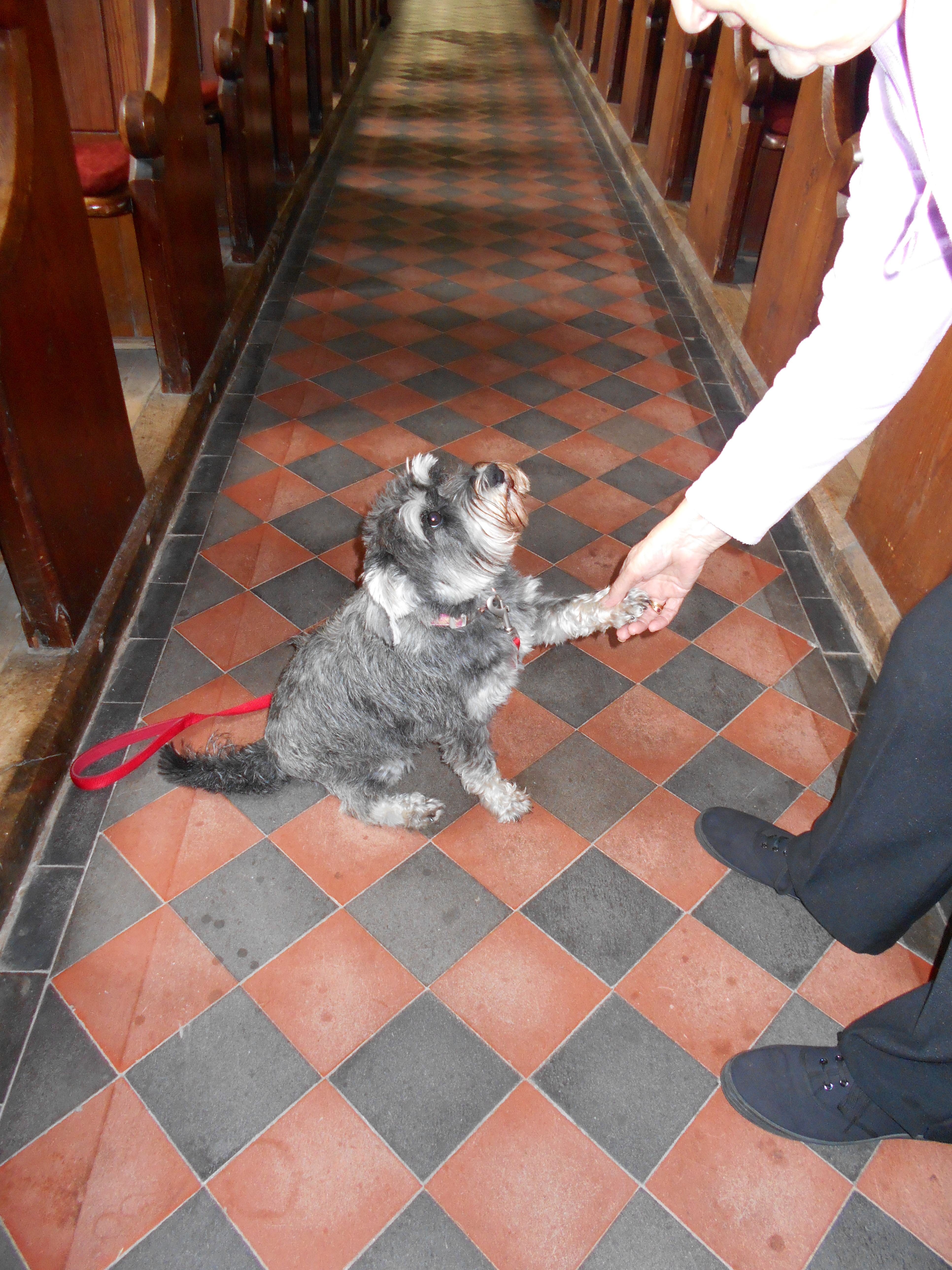 At 11:00 the next morning I popped. I was greeted by Penny, the Schnauzer, and the newest member of Janet’s household. I was ready for her with dog treats. Janet and three other women were seated around a table. They were there to pray and Janet invited me to stay. I was horrified. But it turned out to be very C. of E., that is to say civilized and short.