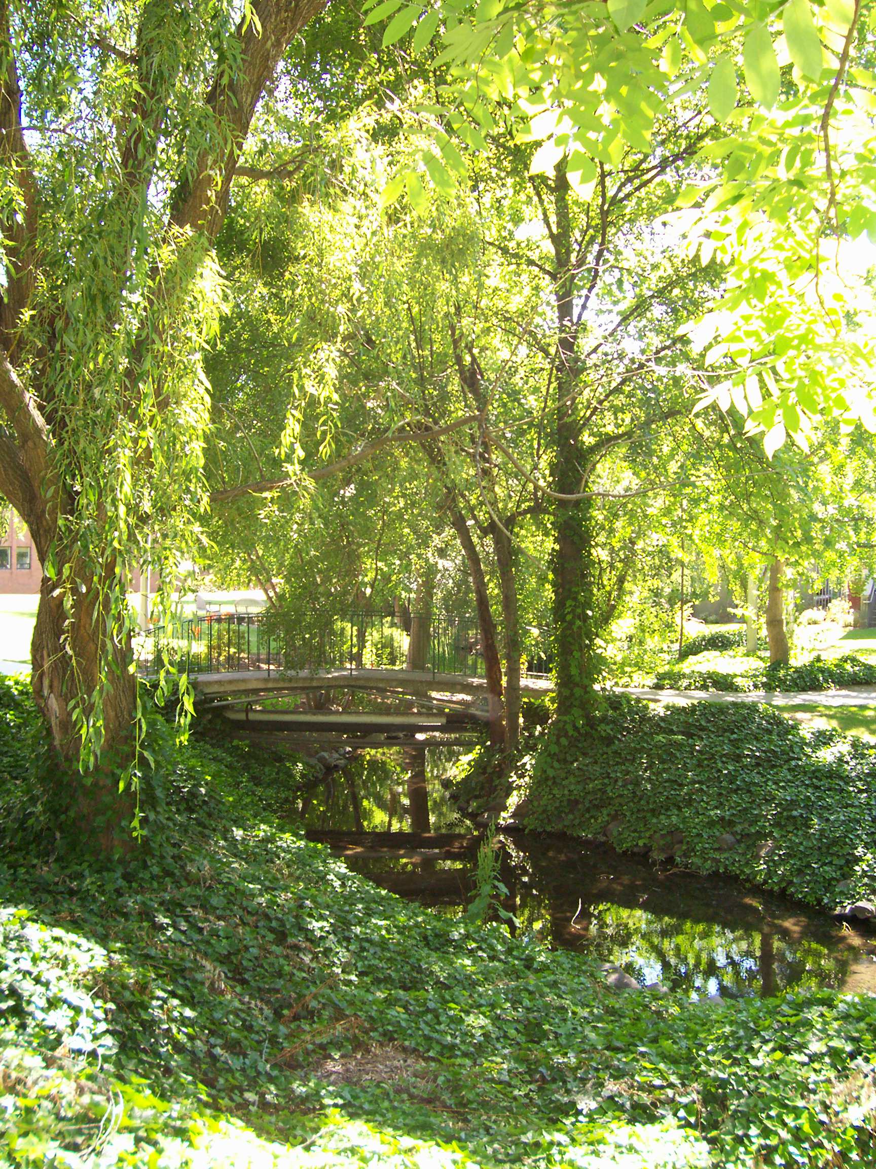 I peeled off and went to the bookstore to look at the reunion kitsch and to pinch a few more reunion pens. Then I went for a slow walk following what used to be Lakem Duckem from Park Street across Boyer to the amphitheater where our commencement ceremony was held on a beautiful May day in 1976. Lakem Duckem has been elongated into a stream. People can no longer be “laked.”