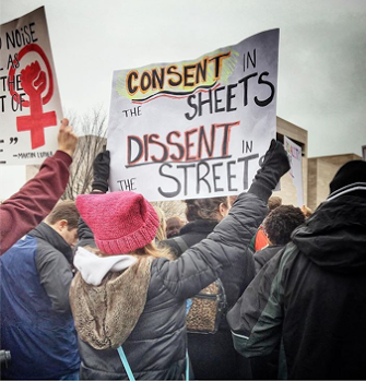 The camera zeroed in on my T-shirt, one of the official Women’s March in Washington shirts.