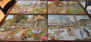 Me, I’m doing jigsaw puzzles (and binge-watching anything with a good story, taking doctor-prescribed anti-depressants and self-prescribed sugar in various forms.)  I find them (the puzzles) meditative and calming.  It’s comforting to go through a process that ends with everything fitting into place and creating something predictable.