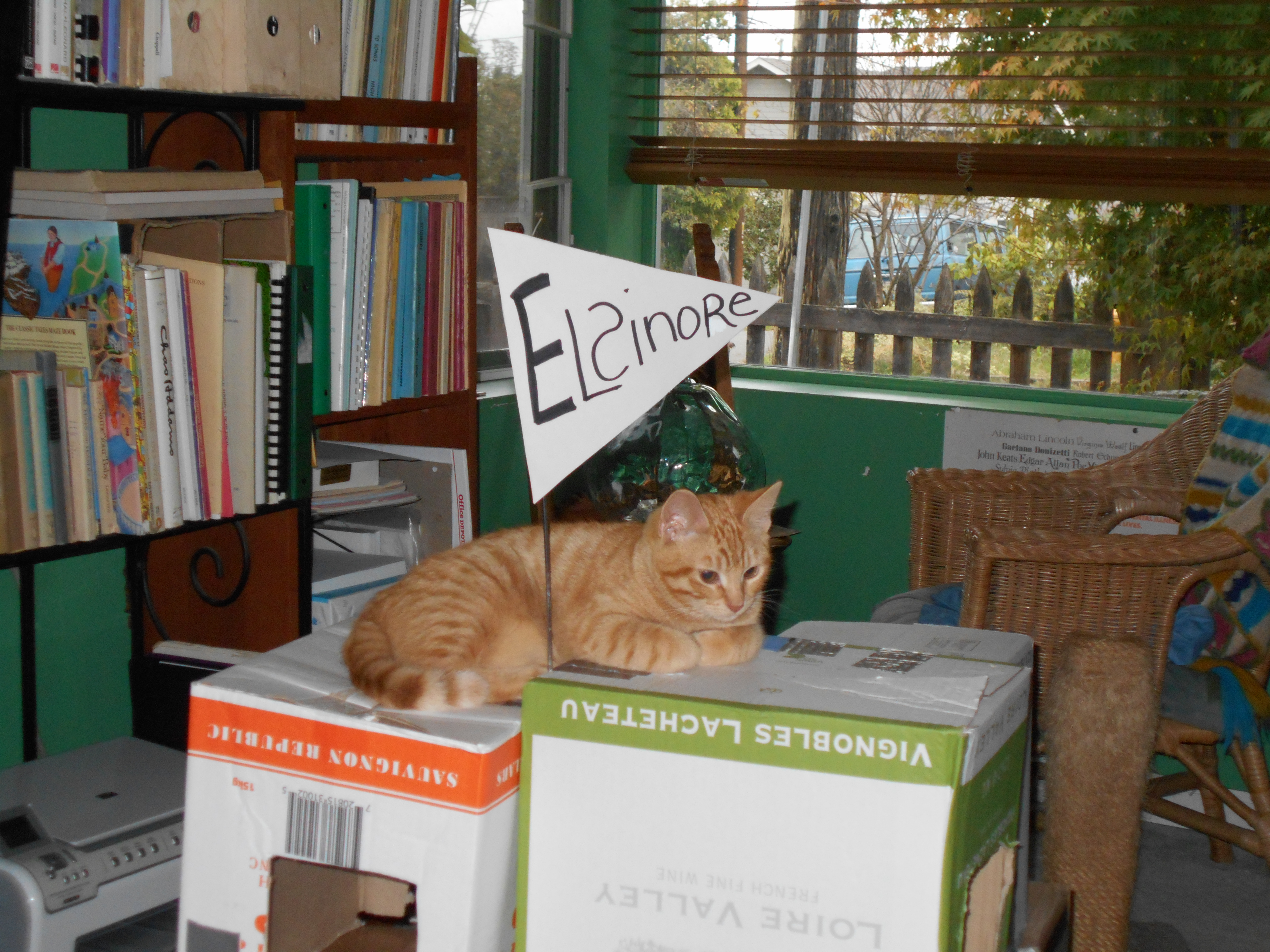 The kittens. We’re all doing pretty well at Elsinore. Laertes had his first vet appointment about six weeks too late for his booster shot so now I have to start the vaccines all over again. Otherwise he is in great shape. The gunk in his ears is not mites but kitty earwax. He doesn’t have worms or fleas or a respiratory infection. The big challenge with him is how much he eats. He’s going to be a huge cat. His paws alone look like fuzzy orange combat boots. So I have two feline grazers and one gourmand.