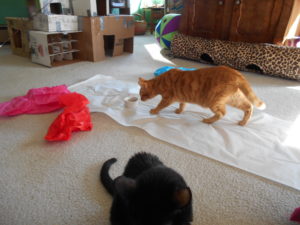 So far he gets along beautifully with the kitten who came with him: Laertes. In the play, Hamlet and Laertes are great friends until they kill each other. That has yet to happen and I’m hoping it doesn’t.