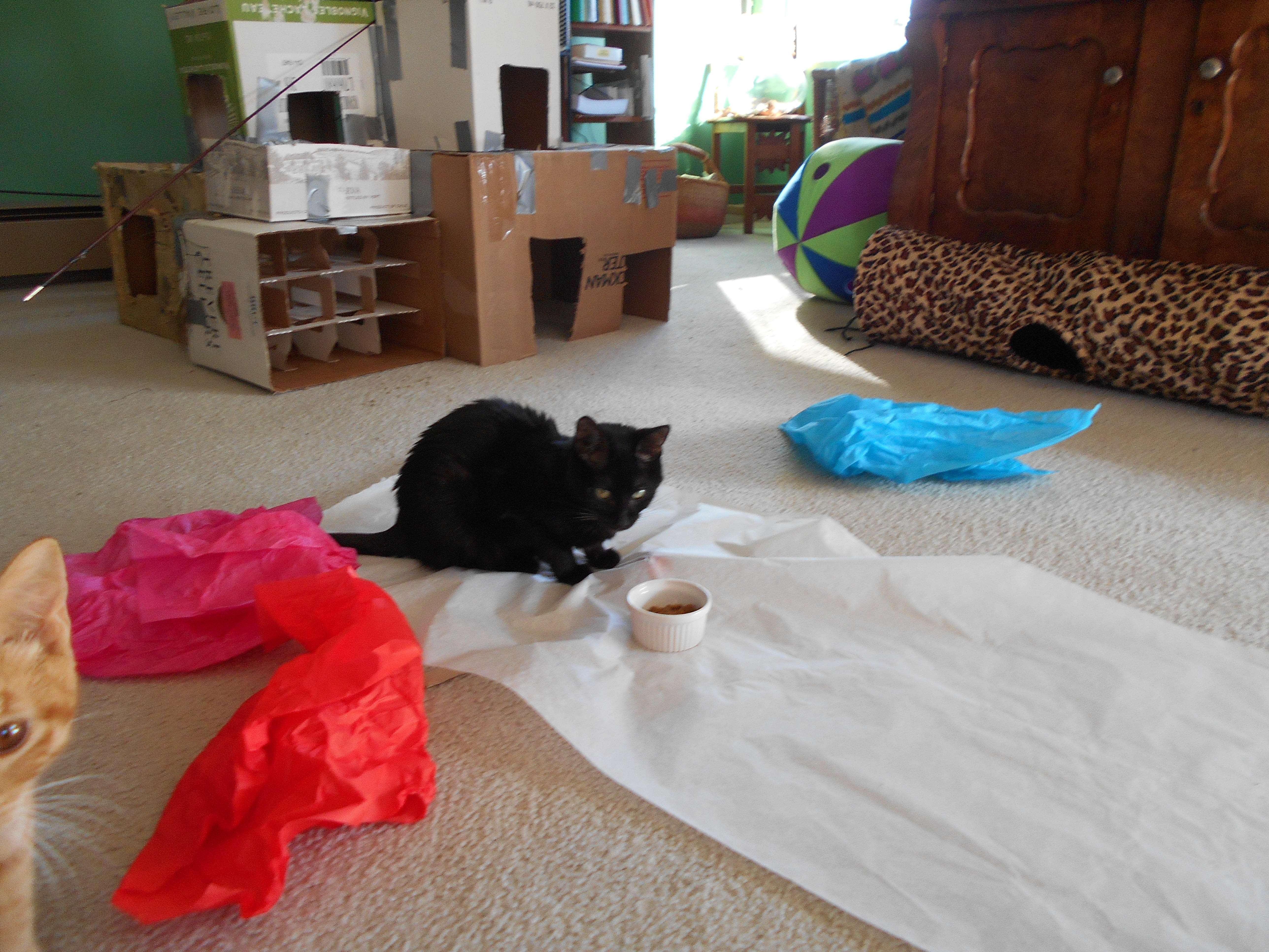 It was a good appointment. His gums looked better. But he had lost weight. He’s a skinny little thing to start with and didn’t have any weight he could afford to lose. I stopped at All the Best Pet Care on the way home and asked for recommendations for never-fail cat food for finicky eaters. I bought small cans of four different meals and more tubes of Churu.