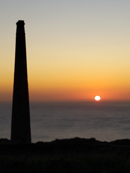 Wendy drove as fast as she would allow herself to get to the Botallack mine by sunset. The evening was cold and the wind never stops blowing in from the Atlantic. Yet quite a large group had gathered. A young woman sat cross-legged on a rock that jutted into the sea and waited. Others waited in their cars, still others clutched their coats and watched. Wendy was one of the former, this not being the first time Sue had photographed the sunset. I was one of the latter mostly because I like to watch Sue photograph. The atmosphere and the drama of the setting sun was magical.