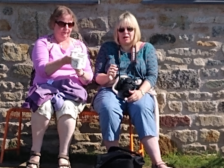 Wendy and Sue grumbling about the cafe at Cape Cornwall
