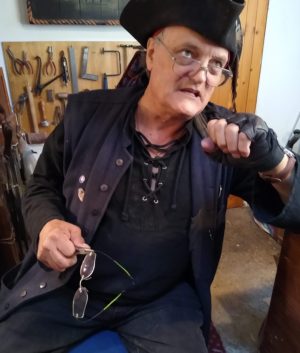 Edward (Eddie the Snake) was decked out like a pirate with plenty of pirate stories to tell in a pirate accent. He was still a master craft metalist and he took on the challenge of my broken glasses.