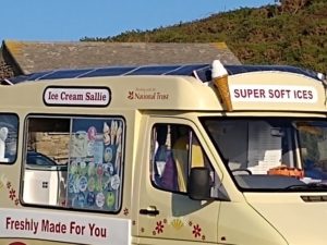 I waded (paddled.) Sue got her Kelly’s ice cream cone from the van that parks at the beach until the end of the day or it runs out of ice cream, whichever comes first.