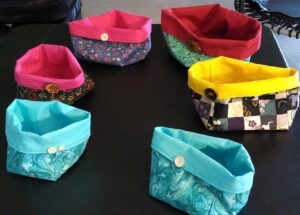 I moved onto fabric boxes. The first one I made could have belonged to the crooked man who lived in a little crooked house. Still the boxes seemed doable and there were skills to be mined from it. I kept making boxes, getting better with each one. That’s where I am now, still making boxes. Still having fun.