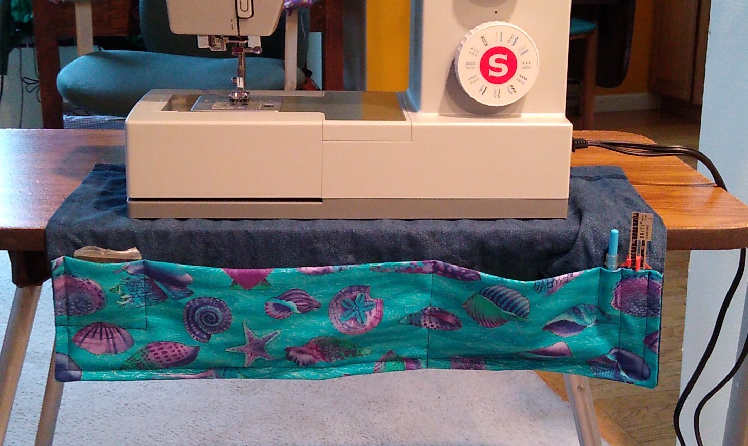 The machine came, I unpacked it, set it up, fiddled around with it, tried some seams. Gwen came over and did a fancy hem and left the needle placement to the left. I was several projects in when I realized the needle should be in the middle. I had been peering around and under and over, trying both pairs of glasses and then no glasses to set the needle in the right place.