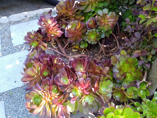 I had a large sunny room upstairs and a bathroom to myself. After dispensing with all the pleasantries, Mary-Ellis left and I fell asleep on the comfortable bed until time for dinner. Walking back to the House of Whimsey felt like a stroll through a continuous garden. The neighborhood is old and lovely, full of flowers, birds, Little Free Libraries, a wishing tree, a poem tree and what I dubbed Succulents on Steroids. The little things we call Hens and Chickens in Seattle are sunflower-huge and sitting atop foot- long stems. An aloe bush looked like a colony of octopi. I remember the first time I saw geraniums in the Bay area: I thought, “Oh my, that’s what they are supposed to look like!” Everything there seems to explode with decadent voluptuousness.