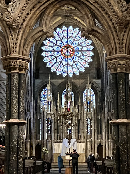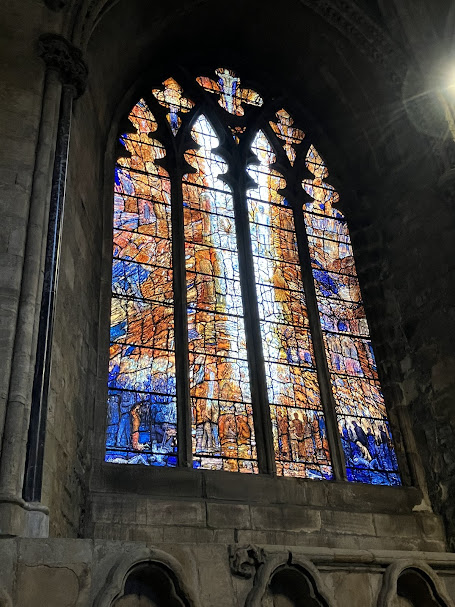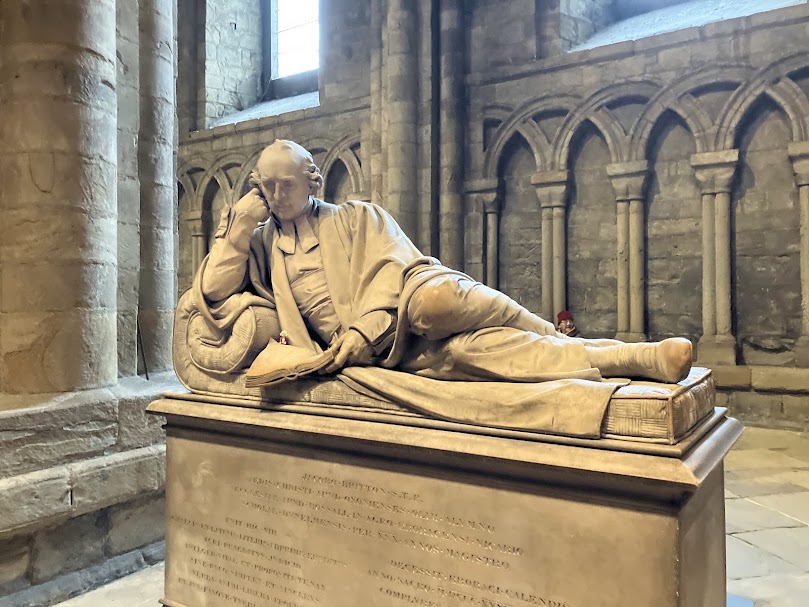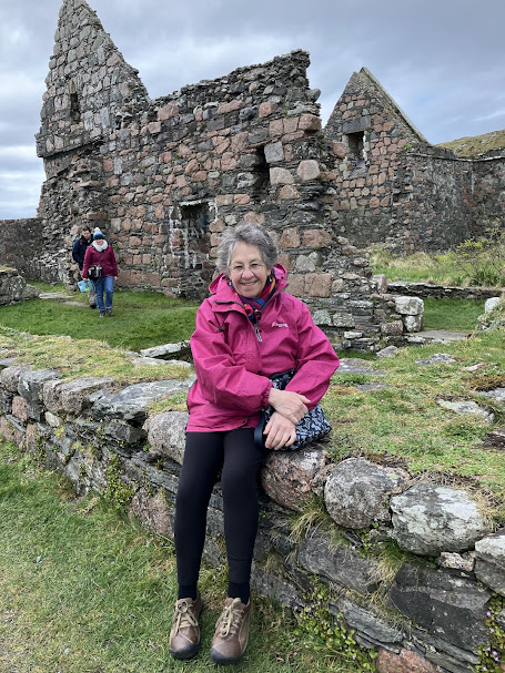 I had a slow morning. I drank a lot of water and didn’t take any pills of any kind all day. Late in the morning I ventured out to walk carefully around the Lindisfarne Priory. The medieval priory was built on the site of an even earlier Anglo-Saxon monastery. The Lindisfarne gospels were created there. St Cuthbert whom we met in Durham holding the head of St Oswald, lived and worked there until he’d had enough and retired down the beach to live as a hermit. He was originally buried on Lindisfarne but his body, which in eleven years had not decayed a bit thus insuring his sainthood, was moved to Durham when the Vikings raided the island in the 800s.