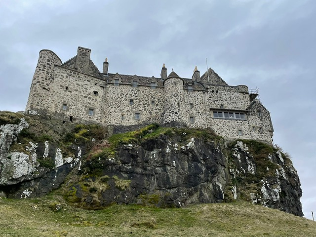 Lindisfarne Castle was on Thursday’s itinerary. It’s an imposing, moody looking structure that sits out in the North Sea and can be seem from Berwick on a clear day. And incidentally, opening and closing times of all the shops, cafes and attractions vary, like the bus, with the tides and are usually pushed up about half an hour every morning. On the half mile walk to the castle, I joined the day tourists who had arrived when the causeway opened, some dressed like pilgrims and druids.